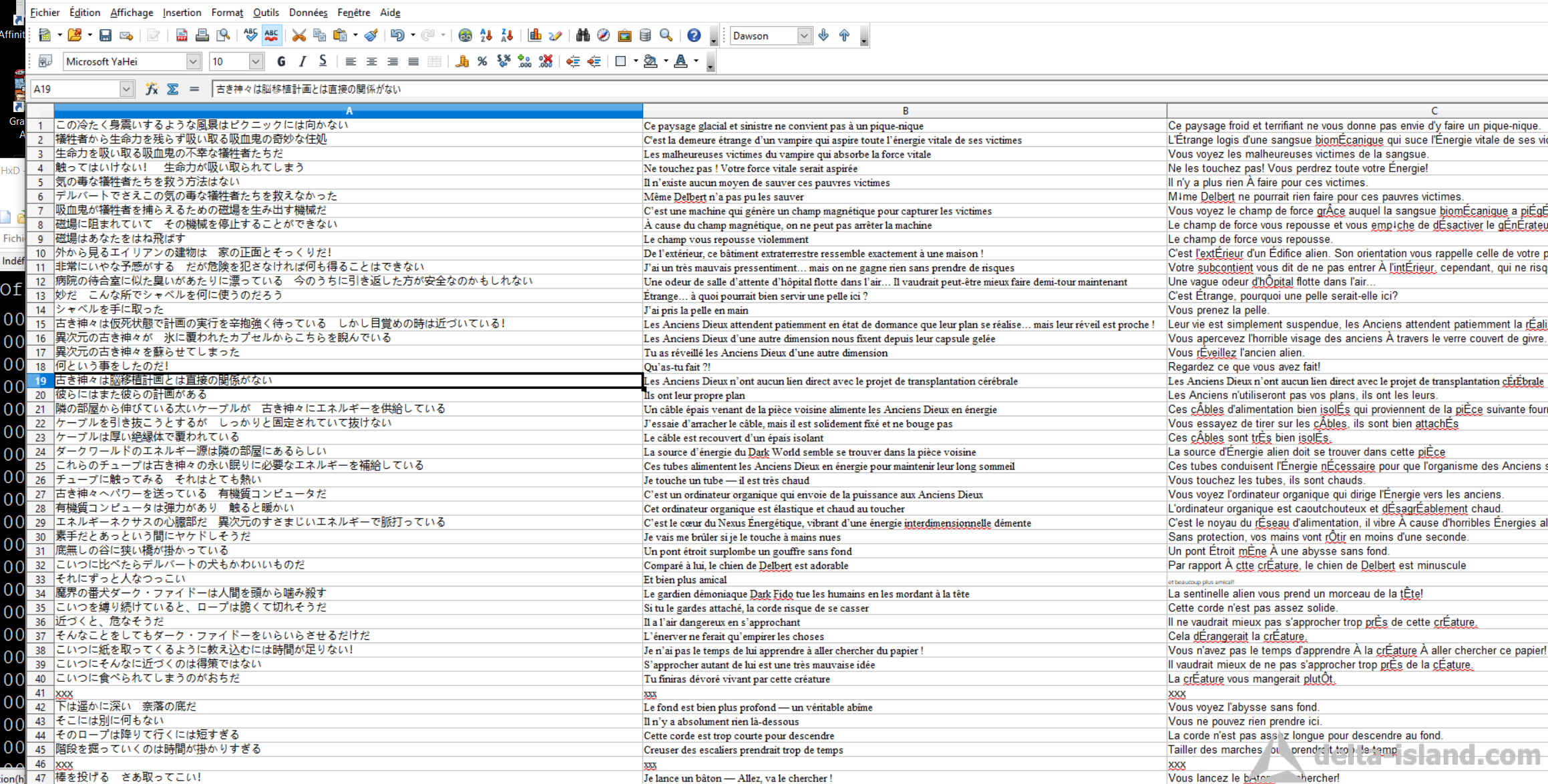 Il reste 3 textes fichiers a débug. Il y a des erreurs. Décalage de texte. J'ai tout mis sur tableau excel. Je n' arrive pas a comprendre. Je pense que c'est la longueur des phrases.