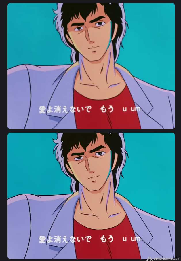 Le traitement retouche vraiment bien, voila le générique de city hunter, version original en haut, et en bas retouché.