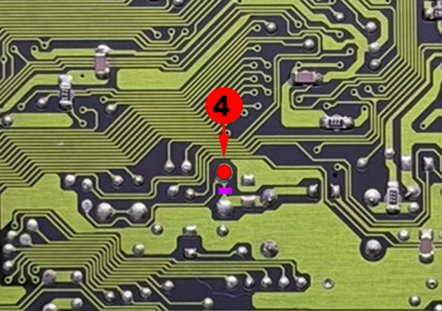 This point requires lightly scraping away the protective lacquer to expose the copper trace.