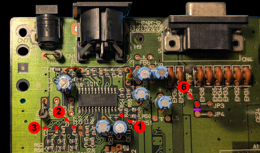 When you use a modified PAL FRA RGB adapter on an NTSC console (JPN or USA), the video signal is not fully compatible. Even after the classic modification (trace cut + PAL sync bypass), a conflict may remain that prevents correct display of the color bar.
