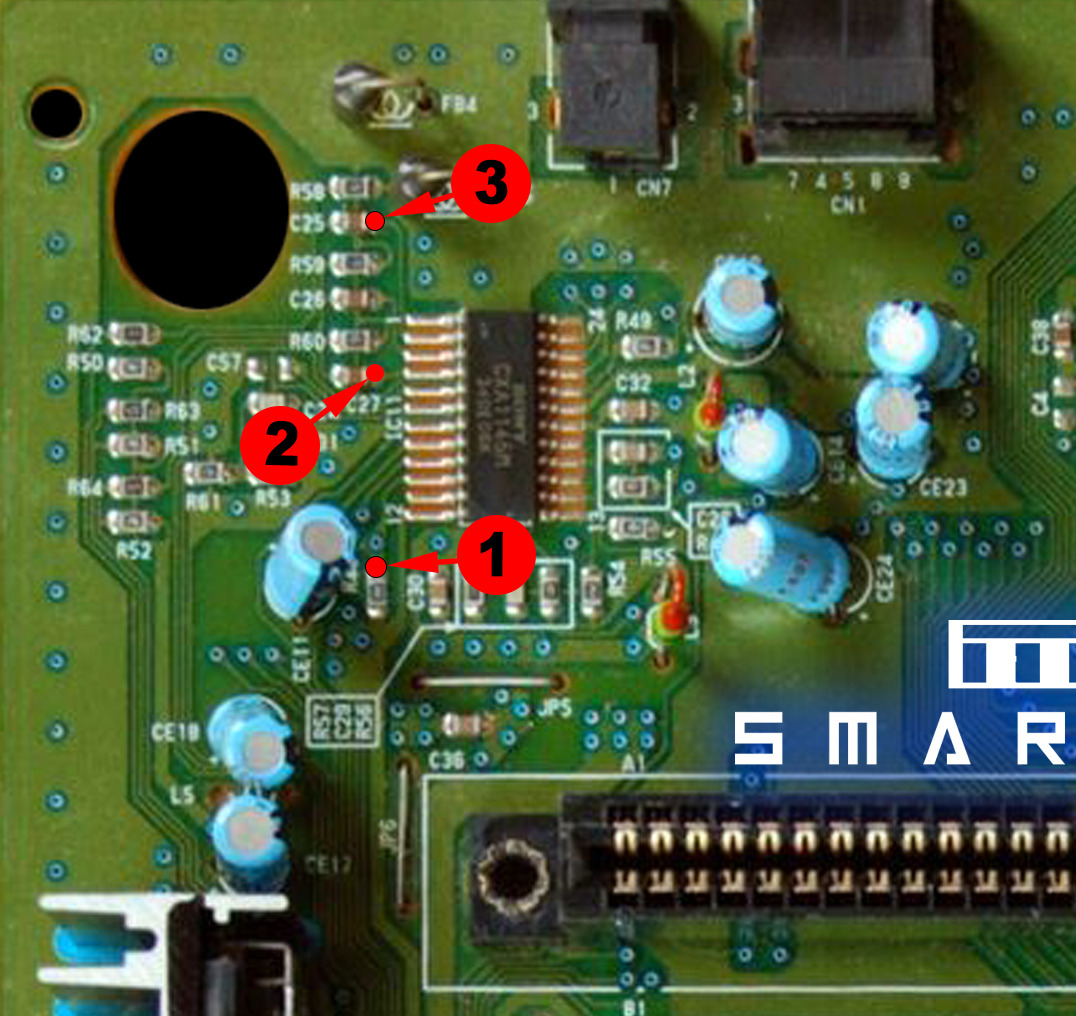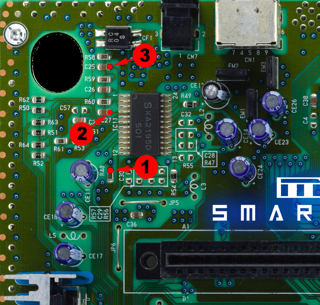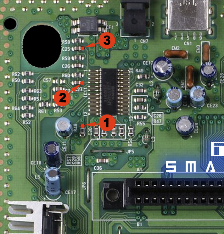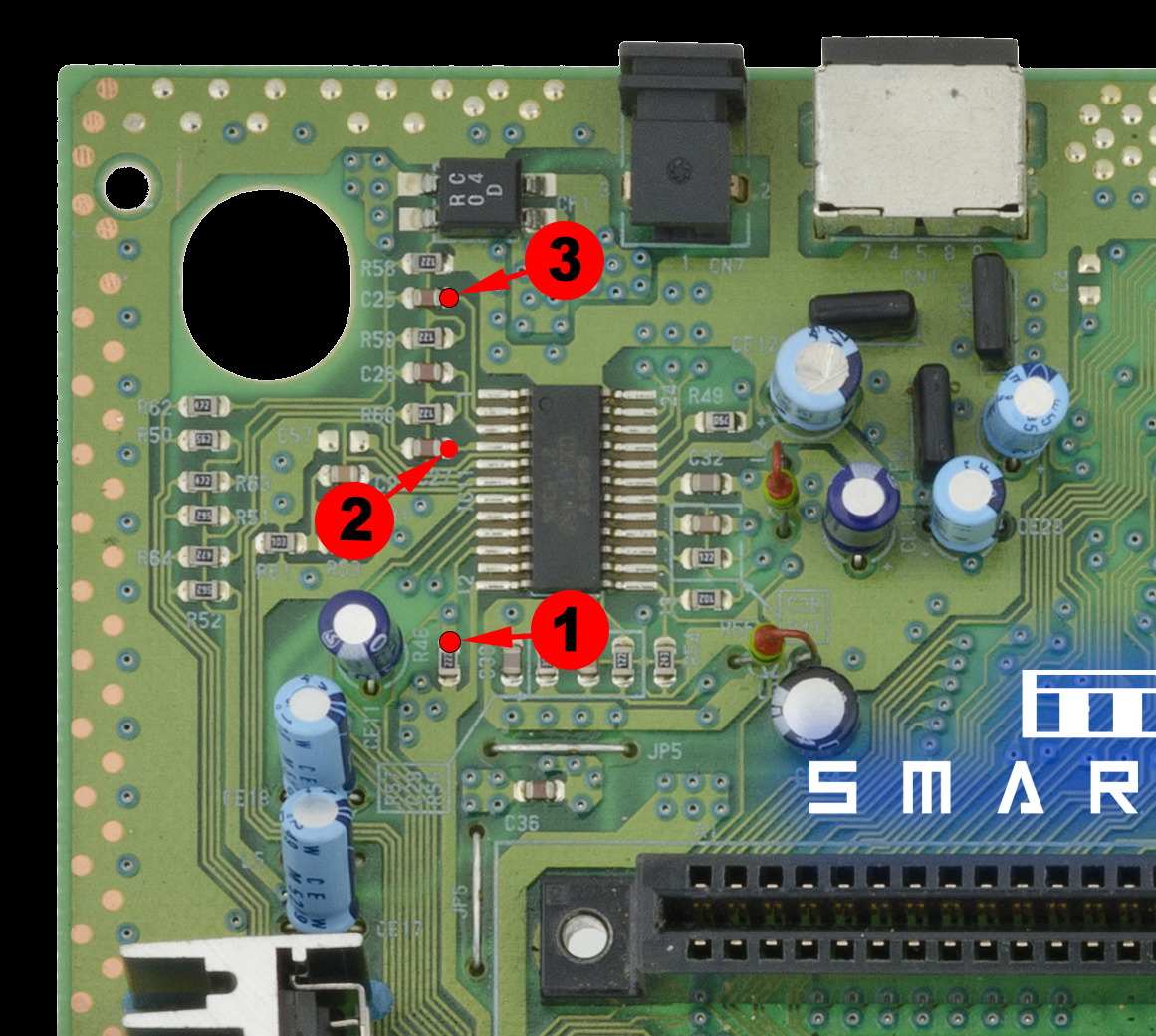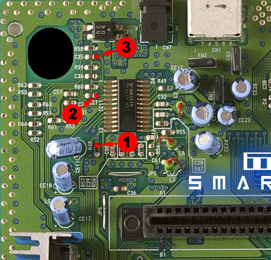 • Remove the SMD ferrite bead FB1 indicated on the diagram.